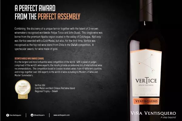 另外,該雜志還舉辦了極具影響力的醇鑒葡萄酒國際大獎(jiǎng)賽(Decanter World Wine Awards,簡稱 DWWA)。該賽事始于 2004 年,一直是歐洲最杰出的葡萄酒競賽之一。同《醇鑒》評(píng)分體系一樣,該大賽也是采取 20 分滿分制,14.5 分以下沒有獎(jiǎng)項(xiàng),14.5-15.4 分為推薦獎(jiǎng),15.5-16.9 分為銅獎(jiǎng),17-18.4 分為銀獎(jiǎng),18.5 分以上是金獎(jiǎng)。除此之外,大賽還設(shè)置了地區(qū)獎(jiǎng)(Regioal Trophy)和國際獎(jiǎng)(International Trophy)。如冰川酒莊神曲紅葡萄酒 2011 年份(Ventisquero Vertice Carmenere/ Syrah)就獲得了 DWWA 的地區(qū)金獎(jiǎng)。