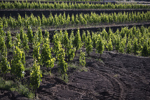 西西里島是意大利重要的葡萄酒產區,其東岸坐落著埃特納(Mount Etna)活火山,噴發產生的火山巖經人力破碎或風化后,成為西西里島產區典型的種植土壤。火山土通常包含玄武巖、灰質土以及其他火山巖的風化碎片,土壤多孔,排水性和蓄水性良好,能儲存和反射熱量,種植的葡萄樹生長態勢良好,果實成熟度佳。此外,火山土中礦物質含量較高,含有鎂、鐵和鉀等多種元素,常被認為能給葡萄酒帶來煙熏、鐵銹和礦物味。