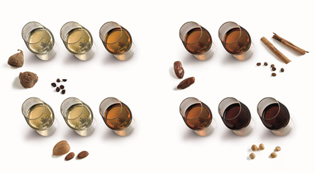 在陳釀階段,氧氣的作用和參與程度則因酒而異。對于使用惰性容器(如不銹鋼發酵罐)陳釀、希望保留品種本身特點的葡萄酒而言,氧氣會造成不利影響,需能少則少。對于使用橡木桶陳釀的葡萄酒來說,少量的氧氣大有裨益,它們可以通過木桶上的細小孔隙進入桶內并與酒液發生輕微的氧化反應,從而柔化葡萄酒的單寧,使酒液的口感更為細膩柔順,同時使其發展出更加復雜多樣的風味。對于西班牙雪莉酒(Sherry)和汝拉(Jura)黃酒(Vin Jaune)這樣的氧化型葡萄酒來說,氧氣的重要性不言而喻,釀酒師通??桃獠捎梦囱b滿的釀酒容器來陳釀這些葡萄酒,以便讓更多氧氣進入桶內,使酒液發展出焦糖、堅果、咖啡、太妃糖等獨特的氧化風味。