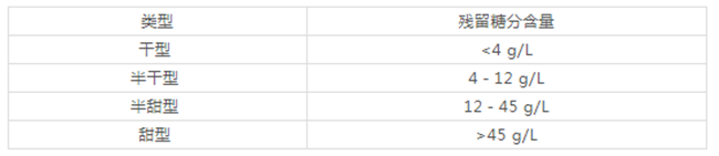 判斷一款葡萄酒是干型還是甜型,或者是半干、半甜,其依據(jù)就是具體的殘留糖分(g/L):
