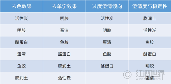 使用明膠來澄清紅葡萄酒可降低引起酒液苦味及澀味的酚類化合物含量,還可減淡酒液的色澤。在澄清過程中,明膠會優(yōu)先與大分子相互作用,因此在澄清陳年葡萄酒這類大分子多酚化合物含量更高的酒液時,它的去色和去單寧效果更明顯。明膠有時也可在發(fā)酵前加入葡萄汁中,以除去汁液的粗糙感和顏色。不過,明膠這種極具侵略性的蛋白質(zhì)澄清劑容易導致過度澄清和褪色,而且它還是一種可溶于酒精,且熱穩(wěn)定性差的蛋白質(zhì),如果過量使用,可能會在酒液中殘留蛋白質(zhì),從而造成酒液渾濁。