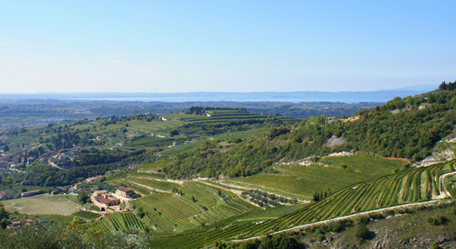 瓦坡里切拉位于維羅納(Verona)北部,地處阿爾卑斯山(Alps)山麓,西面臨近意大利最大的湖泊加爾達湖(Lake Garda),地形以平原和山麓為主。由于受到山脈的阻擋,再加上湖泊的調節作用,產區內的氣候整體比較溫和,可以為葡萄提供理想的自然生長環境。相傳在拉丁語中,產區名字“Valpolicella”意為“Valley of Many Cellars(匯聚眾多酒窖的山谷)”,這也從側面印證了該地與葡萄酒的淵源。