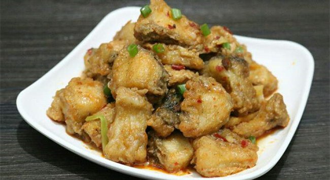 黃燜魚酥:此菜色澤金黃,外殼香酥,內(nèi)含鹵汁,油潤爽口,味道鮮美配干白或桃紅葡萄酒。