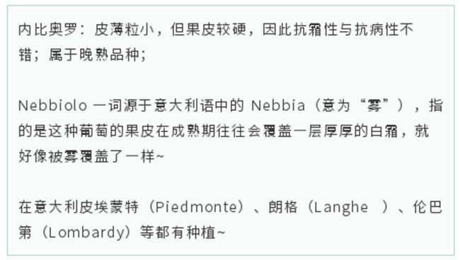 沒有內(nèi)比奧羅,可能就不會有意大利酒王之王和酒后了,因為巴羅洛(Barolo)和巴巴萊斯科(Barbaresco)葡萄酒,都是由100%內(nèi)比奧羅葡萄釀制而成的!