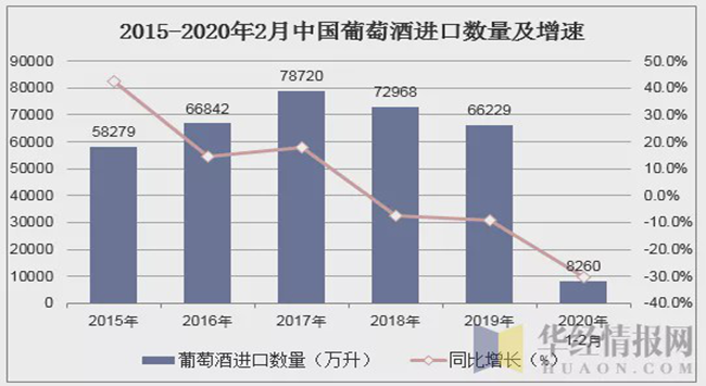 • 2020年1-2月葡萄酒進口量同比下跌30.4%