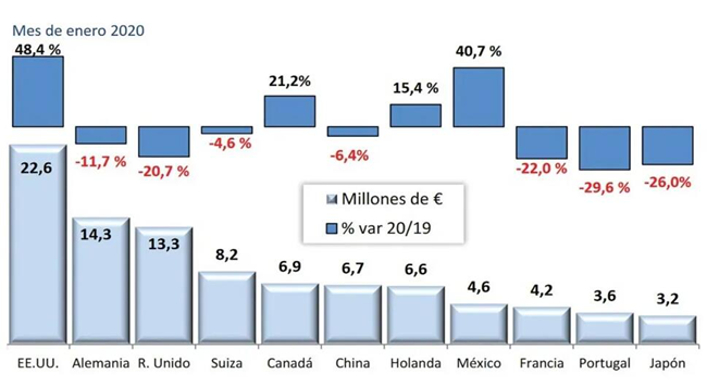 • 2020年1月份西班牙葡萄酒出口平均銷售價格上漲7.5%