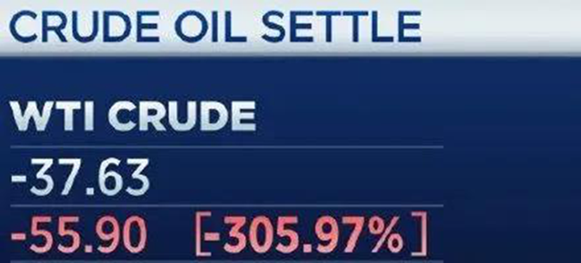 當地時間4月20日,WTI 5月原油期貨結算價收報-37.63美元/桶,歷史上首次收于負值,新冠疫情所導致的需求崩塌無疑是關鍵原因。