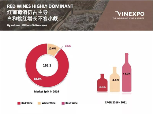 其中,紅葡萄酒仍然我國(guó)人民的最愛(ài),但白葡萄酒以及桃紅的增長(zhǎng)速率卻不容小覷。