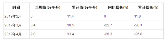 2019年1-4月全國葡萄酒產(chǎn)量分月數(shù)據(jù)
