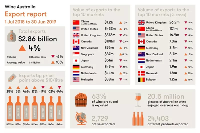 根據澳大利亞葡萄酒管理局(Wine Australia)公布的數據,2019年前5個月,澳大利亞出口中國大陸的葡萄酒總價值首次超越法國,成為中國進口葡萄酒的第一大來源國。