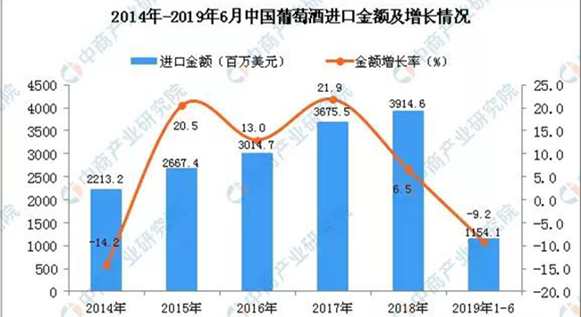 近日,中商產(chǎn)業(yè)研究院發(fā)布了一份2019年1-6月中國(guó)葡萄酒進(jìn)口數(shù)據(jù)。以下是今年上半年中國(guó)葡萄酒進(jìn)口數(shù)量及金額增長(zhǎng)率情況。