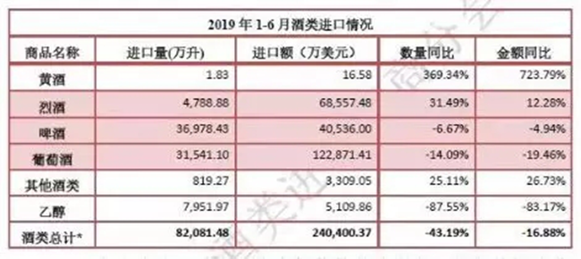 • 2019上半年進口烈酒增幅明顯 智利躍居葡萄酒進口量第一位