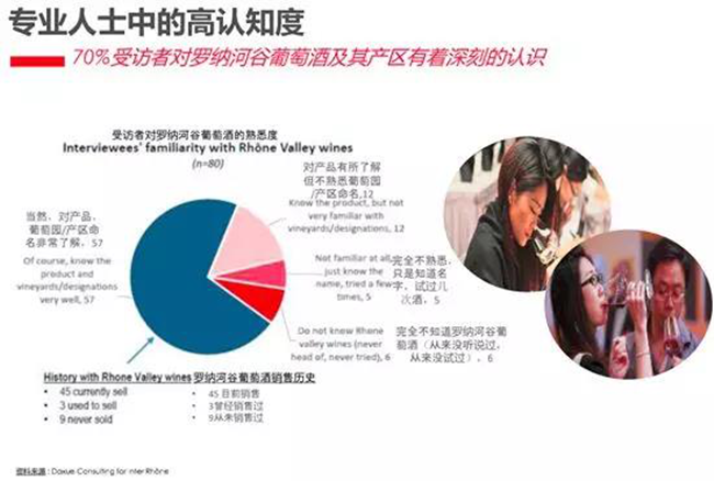 一個產區在一個市場發展的好,除了來自該產區的葡萄酒本身的品質、性價比這些自身條件外,市場對來自該產區的產品的認知同樣非常重要。特別是行業內的專業人士,自身對產區了解足夠深入,在向消費者推薦的時候才更游刃有余,才能將產區的優勢更好的傳達給消費者,從而帶動整個產區在中國市場的發展。這一點在羅納河谷葡萄酒也有一個非常好的體現,據羅納河谷葡萄酒產區協會的一項調研數據顯示,超過70%的專業受訪者對羅納河谷有著深刻的認識,這無疑就對羅納河谷葡萄酒在中國的發展帶來了極大的推動作用。而從消費者端的調研數據來看,羅納河谷葡萄酒已經擁有了超過30%的認知度。
