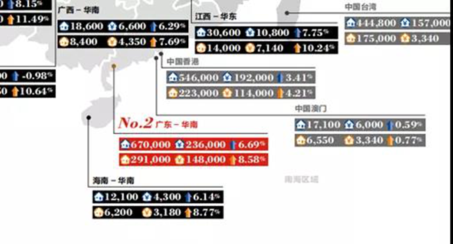 CBNData顯示,廣東是2018和2019年度酒水消費(fèi)金額占比最高的省份,而廣東省坐擁深圳和廣州兩個(gè)一線城市,表現(xiàn)十分搶眼。 回頭看廣東省600萬(wàn)及1000萬(wàn)資產(chǎn)家庭數(shù)量,結(jié)論顯而易見(jiàn)了。