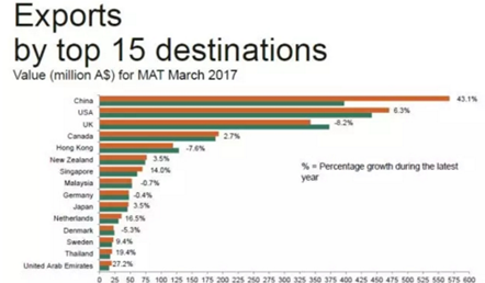 澳大利亞葡萄酒 管理局(Wine Australia)于2017年4月發(fā)布最新出口報告。報告顯示,在過去一年里,澳大利亞葡萄酒對中國大陸出口持續(xù)走強,價量齊升!中國大陸依然保持澳大利亞葡萄酒出口額第一大市場的重要地位。 截止到2017年3月底的一年內(nèi),澳大利亞對中國大...