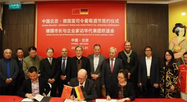 近日,德國市長與企業(yè)家訪華團(tuán)一行在圓滿完成了北京考察和調(diào)研工作后,來到王府井全聚德紫云花廳,就“德國雷司令葡萄酒節(jié)”落戶北京相關(guān)事宜進(jìn)行了座談,會(huì)后中德雙方代表還舉行了“德國雷司令葡萄酒節(jié)”簽約儀式。