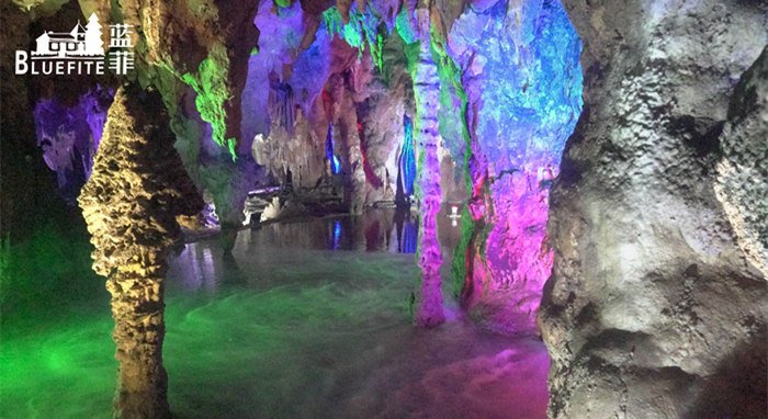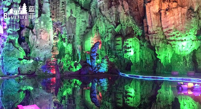 拓展之旅的第一站,就是跟隨導游參觀當地以其雄、奇、壯而著稱的風景名勝——寶晶宮溶洞。溶洞共分四層,共有72洞,洞洞相通;藍菲團隊結伴而行,共同觀賞大自然的鬼斧神工!燈光映襯下的寶晶宮溶洞熠熠生輝,洞內高大寬闊,雄偉壯觀,石筍、石柱林立,石花、石幔千姿百態(tài),石鐘乳玲瓏剔透,絢麗多姿,令藍菲伙伴們流連忘返,嘆為觀止,仿佛踏進了一個仙境。
